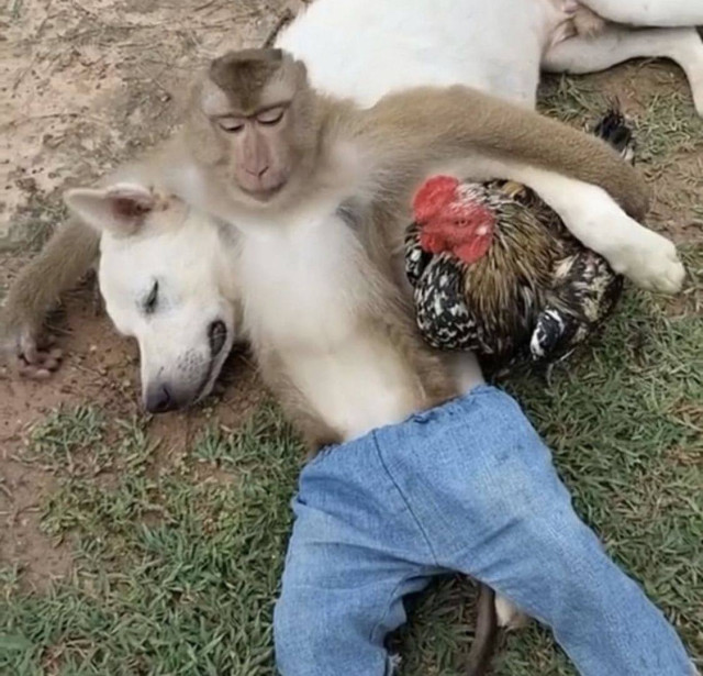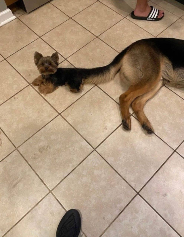 Собакопёс? Нет, просто большой друг работает одеялом для младшего товарища